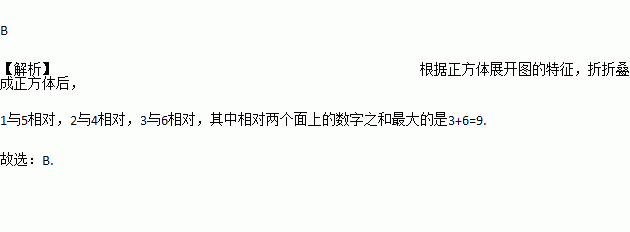 如果如图可以折叠成一个正方体,那么相对两个面上数字之和最大是( )