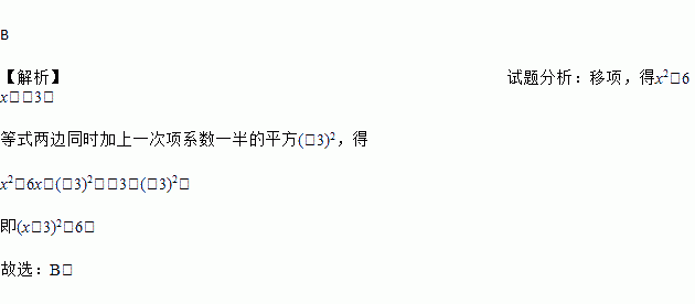 A. (x-3)2=-3 B. (x-3)2=6 C. (x-3)2=3 D. (x-3)2=12