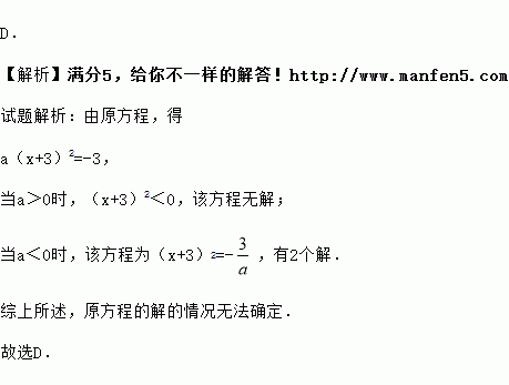 关于x的一元二次方程a(x+3)2+3=0的解的情况是( )