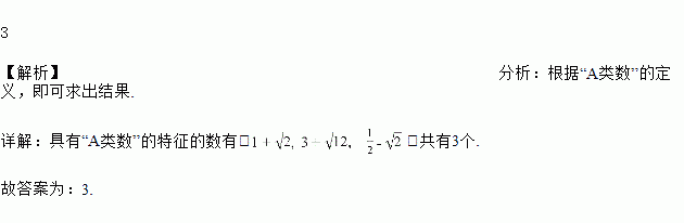 定义:将可化为(其中a、b为整数)的实数称为“A类数”.在, ,3中“A类数”共有___________个.