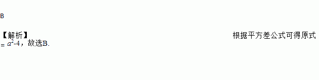 B 【解析】根据平方差公式可得原式= a2-4,故选B.