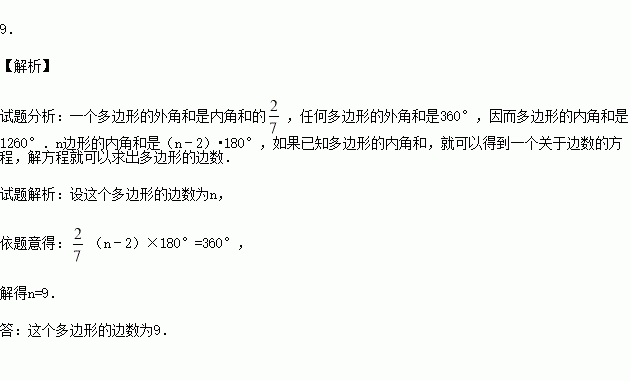 一个多边形的外角和是内角和的,求这个多边形的边数.