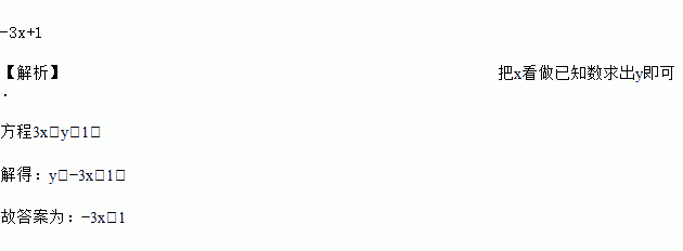 已知二元一次方程3x+y=1,用含有x的代数式表示y,得y= ______.