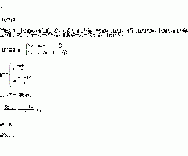 若方程组的解互为相反数,则m的值是( )