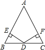 分析:当D是BC中点时DE=DF,由AAS可知△BDE≌△CDF,得DE=DF.