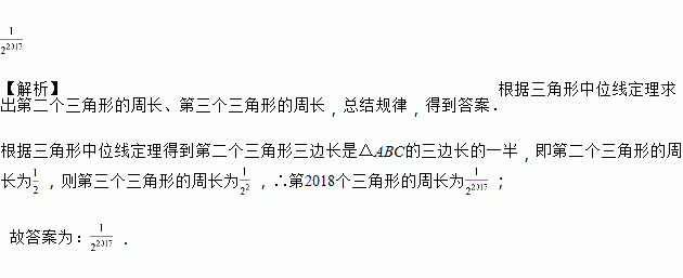 如图,已知△ABC的周长是1,连接△ABC三边的中点构成第二个三角形,再连接第二个三角形三边的中点构成第三个三角形…依此类推,则第2018个三角形的周长为________.