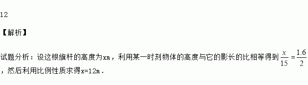 某一时刻身高1.6m的小亮在太阳光下的影长为2m,同时测得学校旗杆的影长是15m,那么这根旗杆的高度是 m.