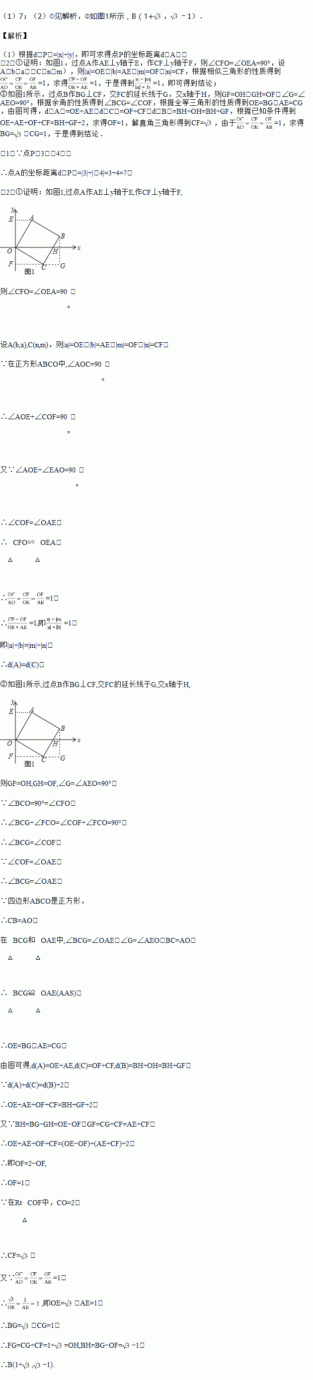 ②若OC=2,且满足d(A)+d(C)=d(B)+2,求点B坐标.