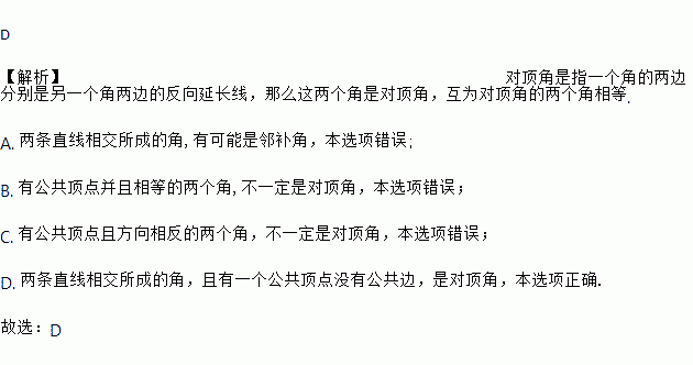 下列关于对顶角的语句中,正确的是( )