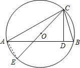 点评:本题主要考查圆周角定理,余角的性质,垂线的性质,关键在于熟练运用相关的性质定理,正确的推出∠ACE=∠BCD.