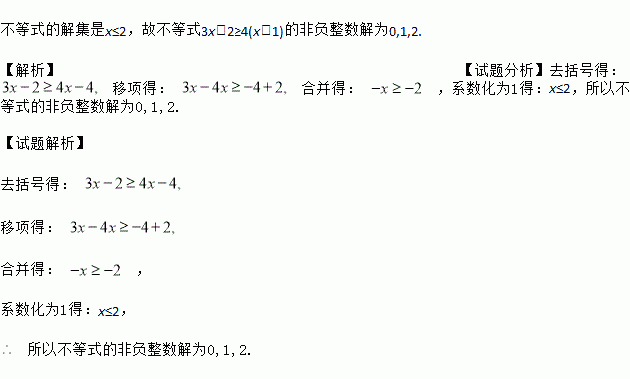 求出不等式3x-2≥4(x-1)的所有非负整数解.