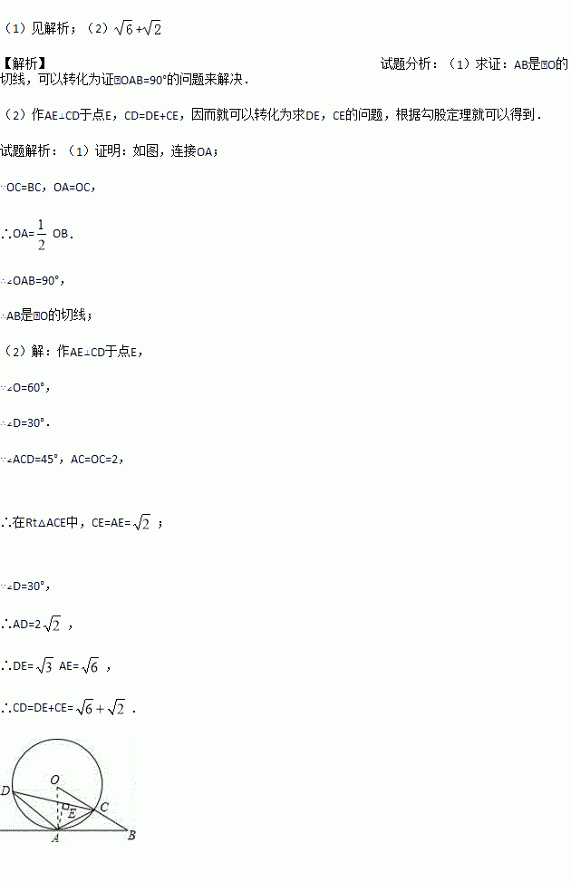 (1)求证:AB是⊙O的切线;