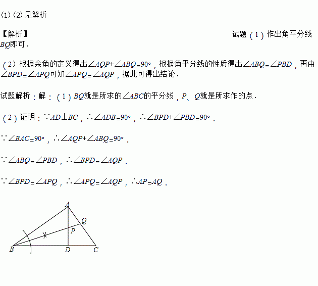 (2)若∠ABC的平分线分别交AD,AC于P,Q两点,证明:AP=AQ.