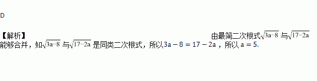如果最简二次根式与能够合并,那么a的值为( ).