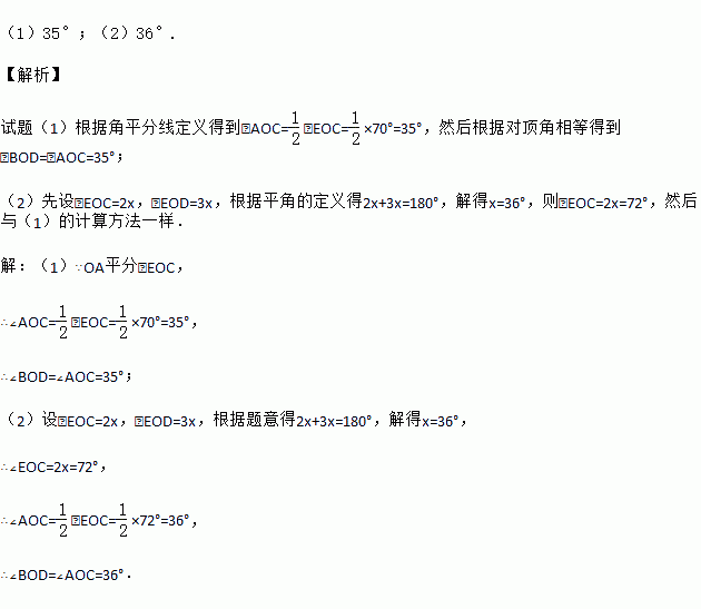 (2)若∠EOC:∠EOD=2:3,求∠BOD的度数.