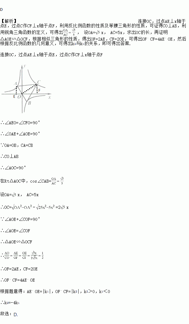(x>0)的图象上,连结CA,CB,当CA=CB且cos∠CAB=