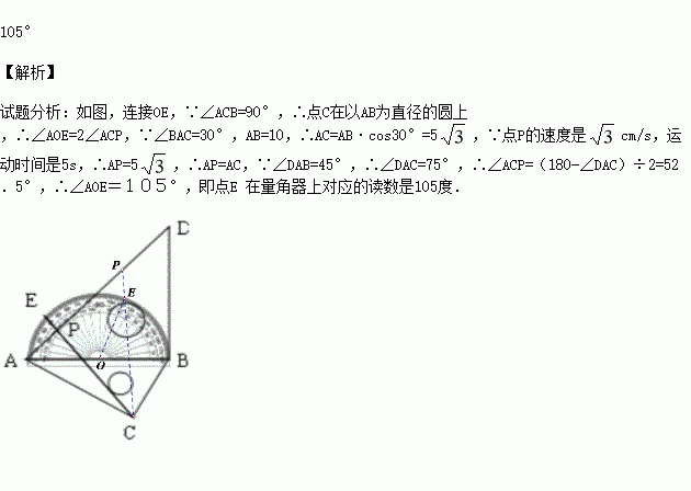 cm的速度移动,CP与量角器的半圆弧交于点E,已知AB=10cm,第5秒时,点E 在量角器上对应的读数是 度.