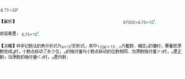 “辽宁号” 航空母舰的满载排水量为67500吨,将数67500用科学记数法表示为_______.