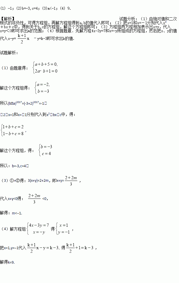 (2)当x=1和x=-1时,式子x2+bx+c的值分别为2和8,求b、c的值;