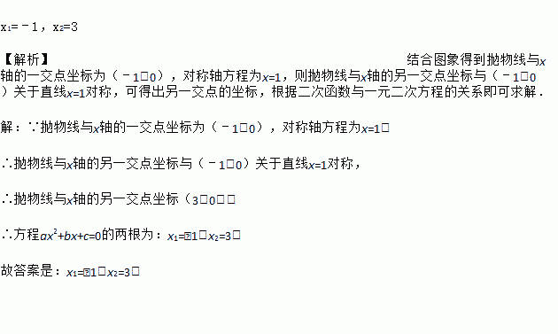 二次函数y=ax2+bx+c的图象如图所示,则方程ax2+bx+c=0的两根为_____.