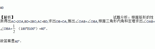 在矩形ABCD中,对角线AC、BD交于点O,若∠AOB=100°,则∠OAB=___________度.