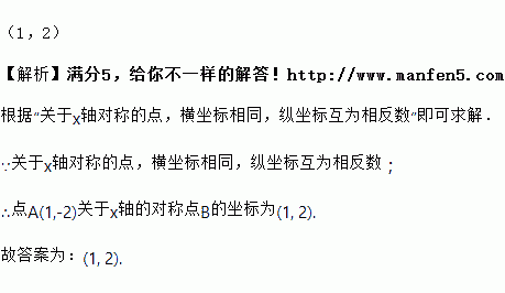 点A(1,-2)关于x轴的对称点为B.则点B的坐标为_____________.