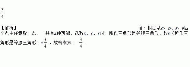 (2016·四川资阳中考)如图,在3×3的方格中,A,B,C,D,E,F分别位于格点上,从C,D,E,F四点中任取一点,与点A,B为顶点作三角形,则所作三角形为等腰三角形的概率是________.