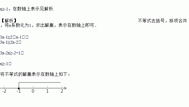 解不等式:3x-1≥2(x-1),并把它的解集在数轴上表示出来.