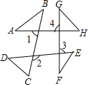 ∵∠1=∠A+∠B,∠2=∠C+∠D,∠3=∠E+∠F,∠4=∠G+∠H,