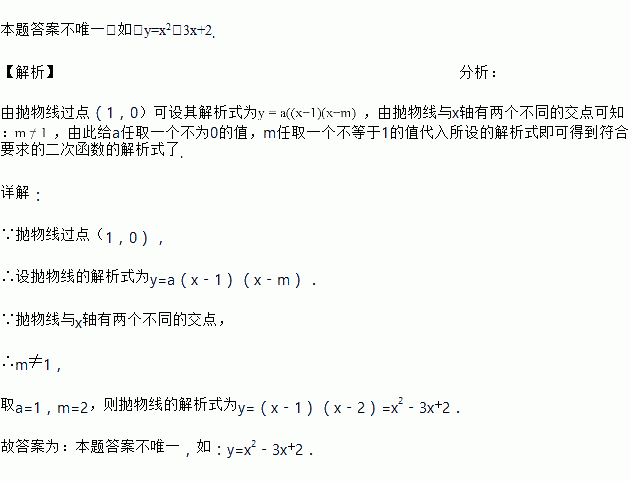请写出一个二次函数的解析式,满足过点(1,0),且与x轴有两个不同的交点_____.