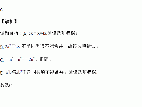 C. ﹣n2﹣n2=﹣2n2 D. a2b﹣ab2=0
