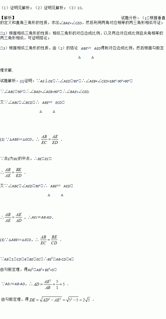 如图,在四边形ABCD中,∠ABC=∠BCD=90°,点E为BC的中点,AE⊥DE.