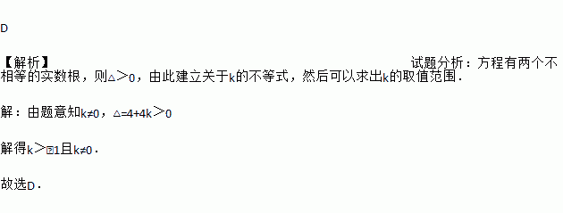 A. k>-1 B. k≥-1 C. k≠0 D. k>-1且k≠0