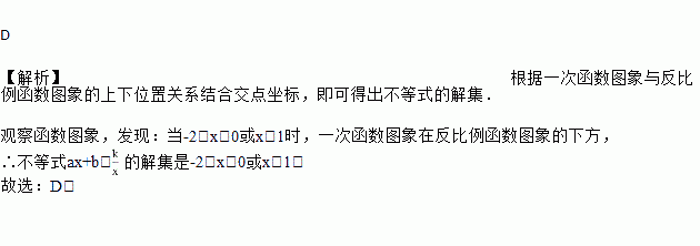的图象相交于A(﹣2,y1)、B(1,y2)两点,则不等式ax+b<