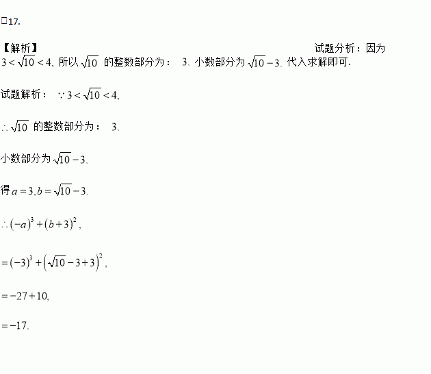 已知a是的整数部分,b是它的小数部分,求(-a)3+(b+3)2的值.