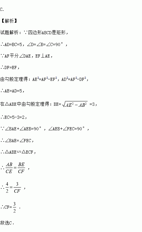 如图,矩形ABCD中,AB=4,BC=5,AF平分∠DAE,EF⊥AE,则CF等于( )