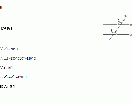 如图,已知直线a、b被直线c所截,a∥b,∠1=60°,则∠2的度数为( )