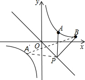 解:设A点关于原点的对称点为A′,连接A′B,交直线y=-x为P点,此时PA+PB有最小值,
