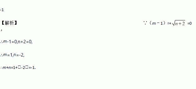 若(m﹣1)2+=0,则m+n的值是 ________