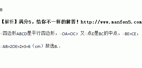 如图,?ABCD中,对角线AC、BD交于点O,点E是BC的中点.若OE=3cm,则AB的长为( )