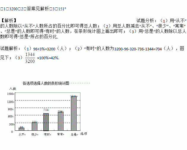 (3)在扇形统计图中,“总是”的圆心角为 .(精确到度)