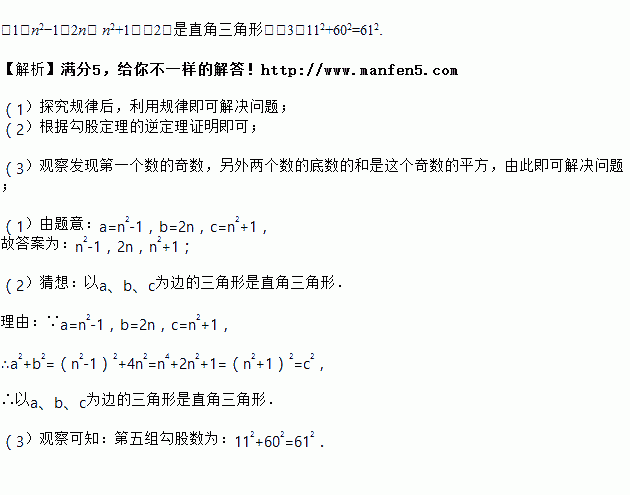 (3)观察下列勾股数32+42=52,52+122=132,72+242=252,92+402=412,分析其中的规律,写出第五组勾股数.