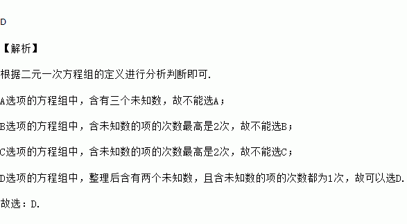 下列方程组中是二元一次方程组的是 ( )