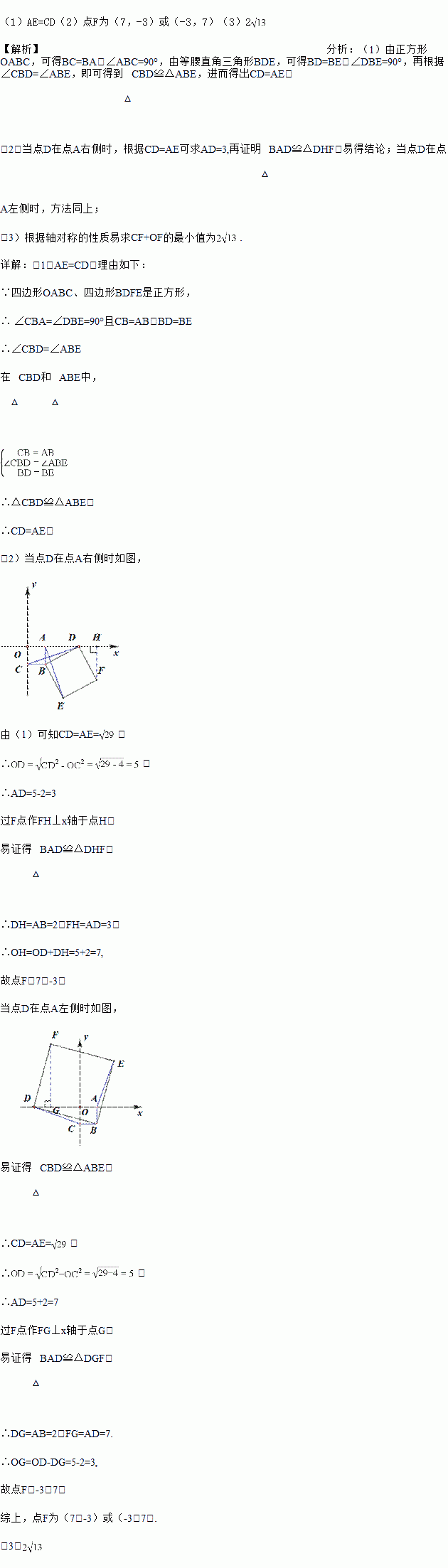 (3)连接CF、OF,请直接写出CF+OF的最小值.