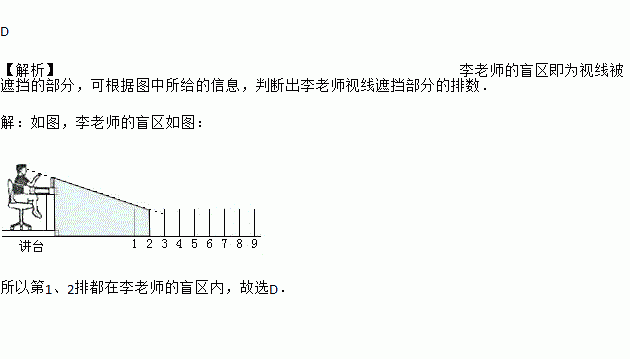 李老师视线的盲区说法正确的是( )