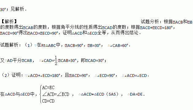 如图,在Rt△ABC中,∠ACB=90°,∠B=30°,AD平分∠CAB.