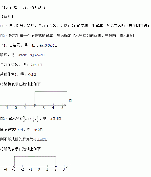 (1)2(2x+1)﹣9x≤3(1﹣x)﹣5;