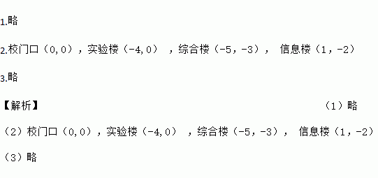 如图,是某校的平面示意图,已知图书馆、行政楼的坐标分别为(-3,2),(2,3).完成以下问题: