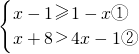 (2)考查了一元一次不等式组解集的求法,其简便求法就是用口诀求解.求不等式组解集的口诀:同大取大,同小取小,大小小大中间找,大大小小找不到(无解).