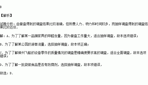 D.为了了解一批袋装食品是否有防腐剂,选择全面调查调查